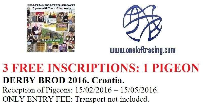www.oneloftracing.com we love One Loft Races and we want our users to participate in this exciting type of race in 2016, therefore we are going to draw the free inscription of THREE pigeons in Derby BROD 2016.