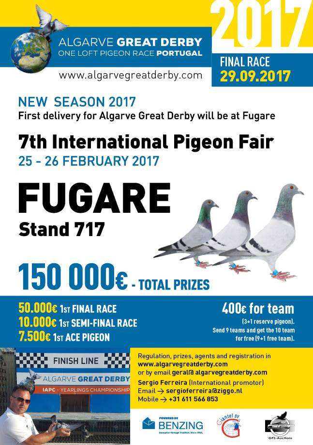 For participating in Algarve Great Derby 2017 you can participate at the same time and with the same pigeons in One Loft Racing World League, but remember, you have to register.