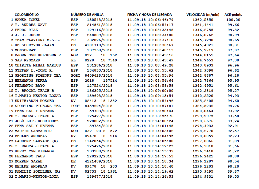 RACE RESULTS