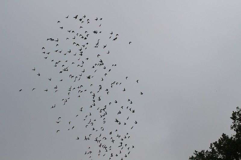 Doves flying already large laps around the Dovecote.