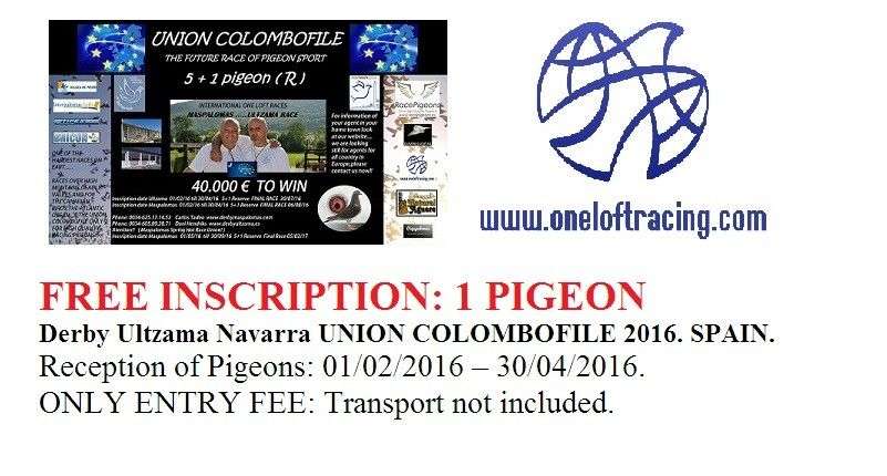 www.oneloftracing.com we love One Loft Races and we want our users to participate in this exciting type of race in 2016, therefore we are going to draw the free inscription of a pigeon in Derby Ultzama Navarra. UNION COLOMBOFILE 2016.