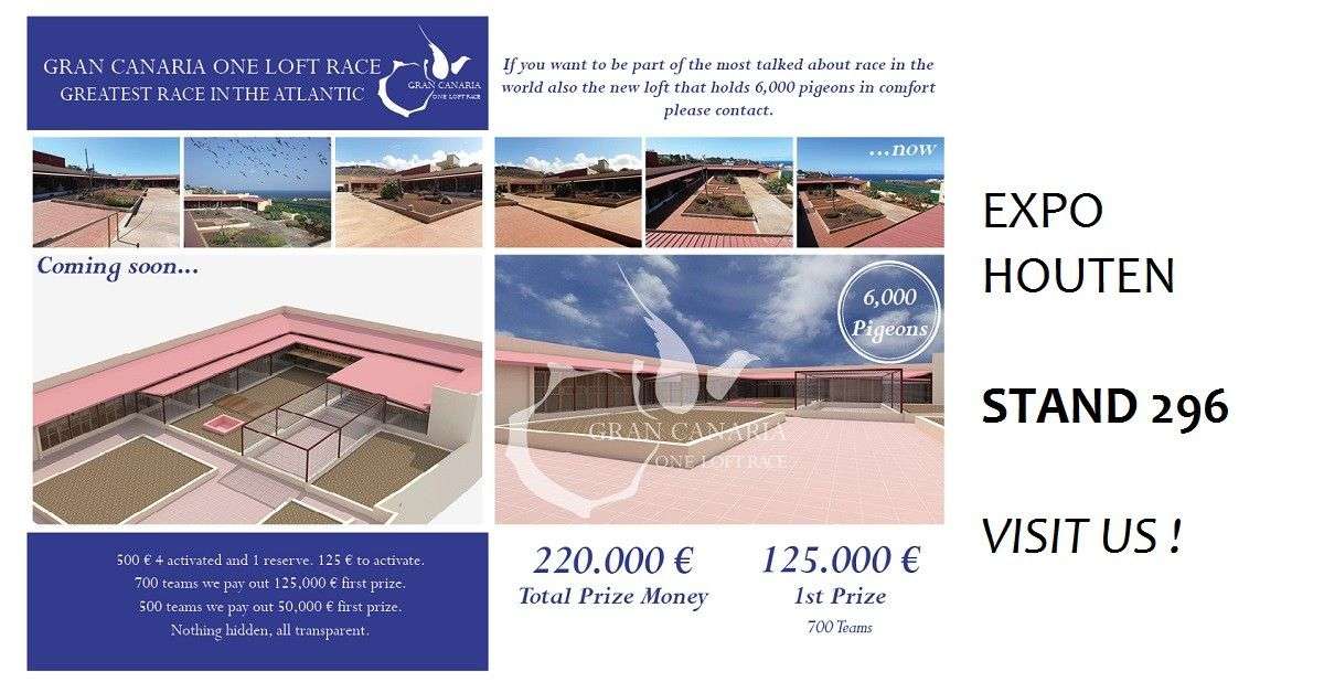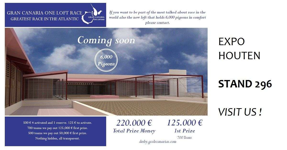 GRAN CANARIA ONE LOFT RACE will be at Expo Houten, 4 & 5 March 2017. STAND 296. You can know the greatest Race in the Atlantic.