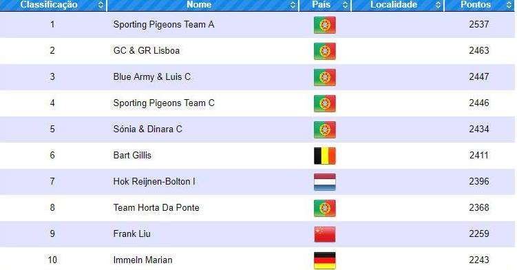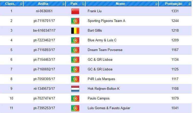 Em relação aos melhores pombos a tabela continua liderada por um atleta da equipa de Frank Liu. Todos os detalhes podem ser consultados em http://classificacoes.columbofiliaalgarve.pt/…/yc-especiali…