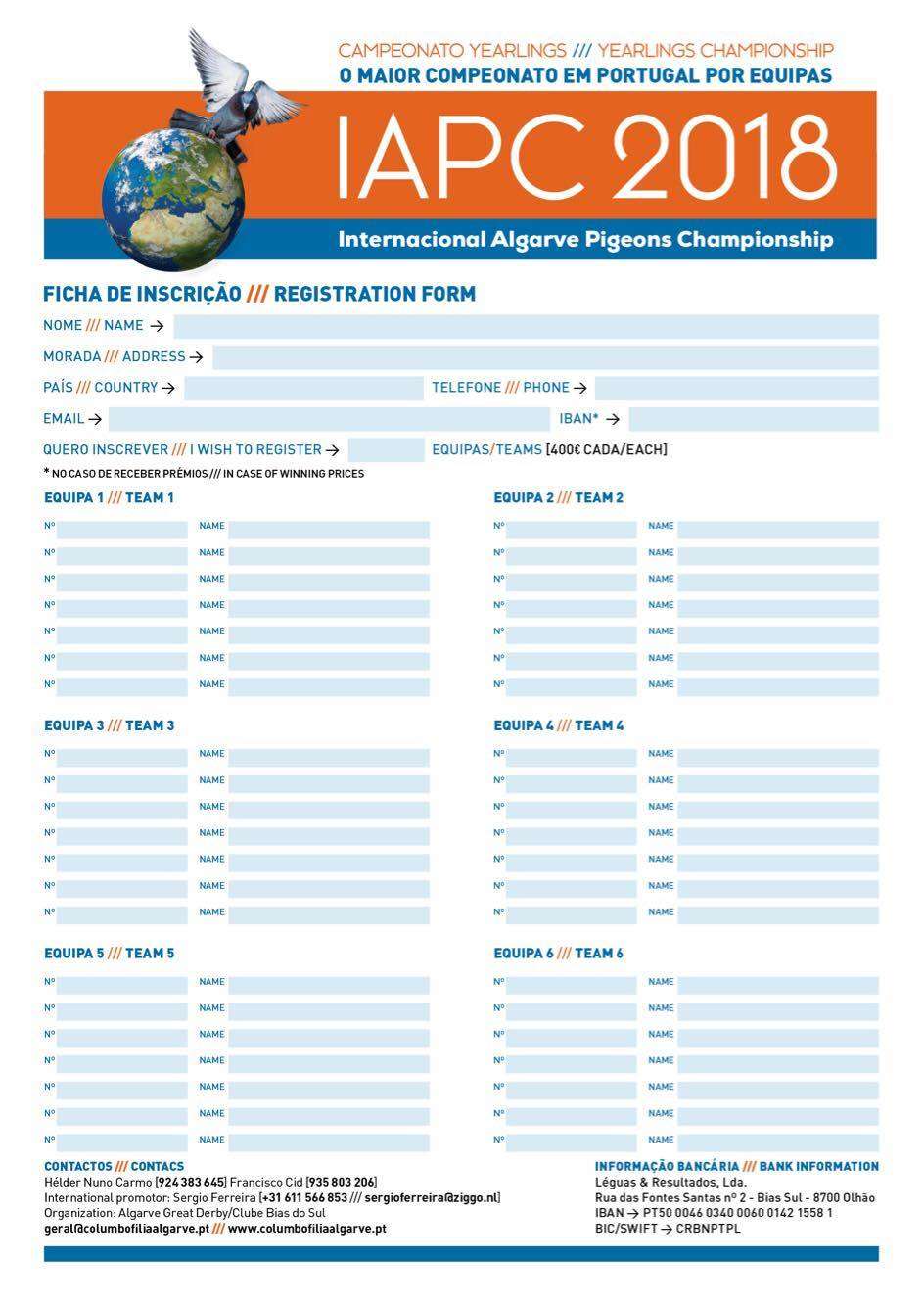 INTERNACIONAL ALGARVE PIGEONS CHAMPIONSHIP. IAPC 2018ALGARVE GREAT DERBY / 18 September, 2017 18 September, 2017 Guardar]]>