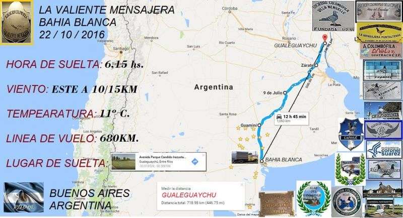 LA VALIENTE MENSAJERA 2016. SUELTA DESDE BAHIA BLANCA, BUENOS AIRES ASOCIACIÓN COLOMBOFILA LA VALIENTE MENSAJERA