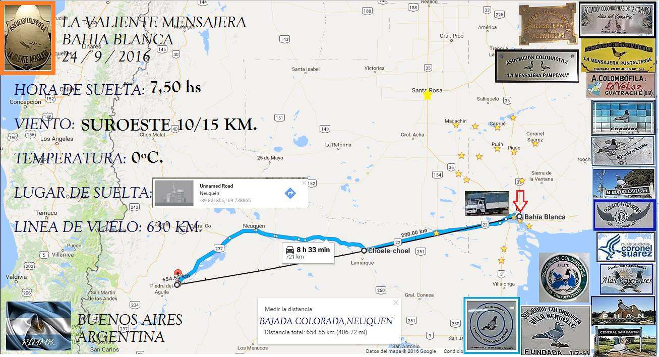 LA VALIENTE MENSAJERA 2016. SUELTA DESDE BAHIA BLANCA, BUENOS AIRES ASOCIACIÓN COLOMBOFILA LA VALIENTE MENSAJERA