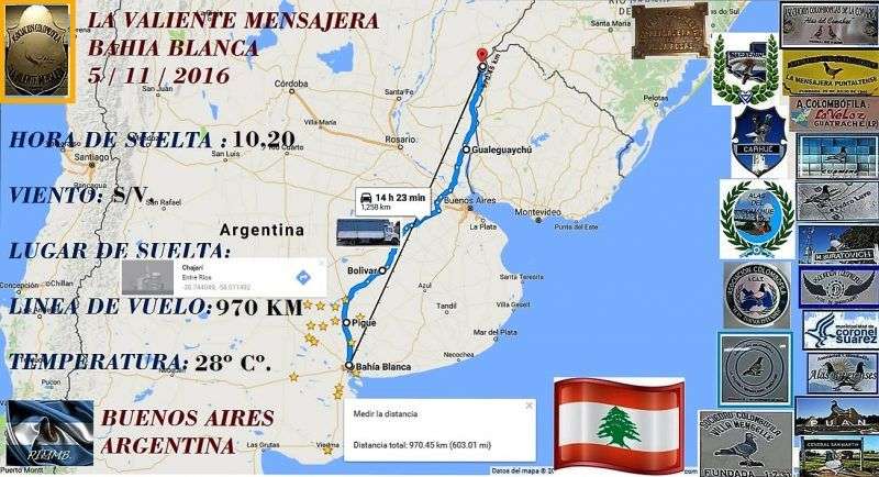 LA VALIENTE MENSAJERA 2016. SUELTA DESDE BAHIA BLANCA, BUENOS AIRES ASOCIACIÓN COLOMBOFILA LA VALIENTE MENSAJERA