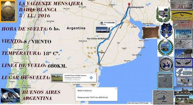 LA VALIENTE MENSAJERA 2016. SUELTA DESDE BAHIA BLANCA, BUENOS AIRES ASOCIACIÓN COLOMBOFILA LA VALIENTE MENSAJERA