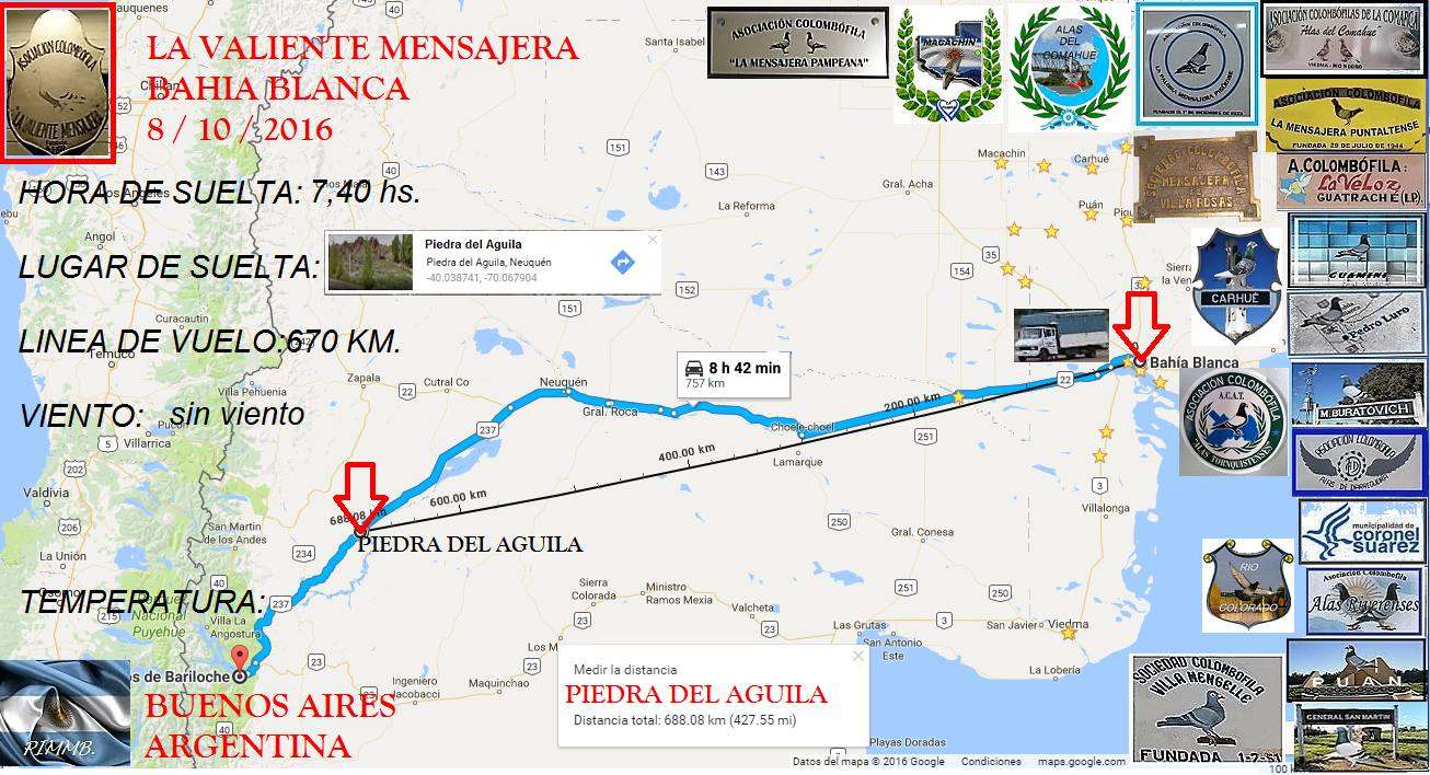 LA VALIENTE MENSAJERA 2016. SUELTA DESDE BAHIA BLANCA, BUENOS AIRES ASOCIACIÓN COLOMBOFILA LA VALIENTE MENSAJERA