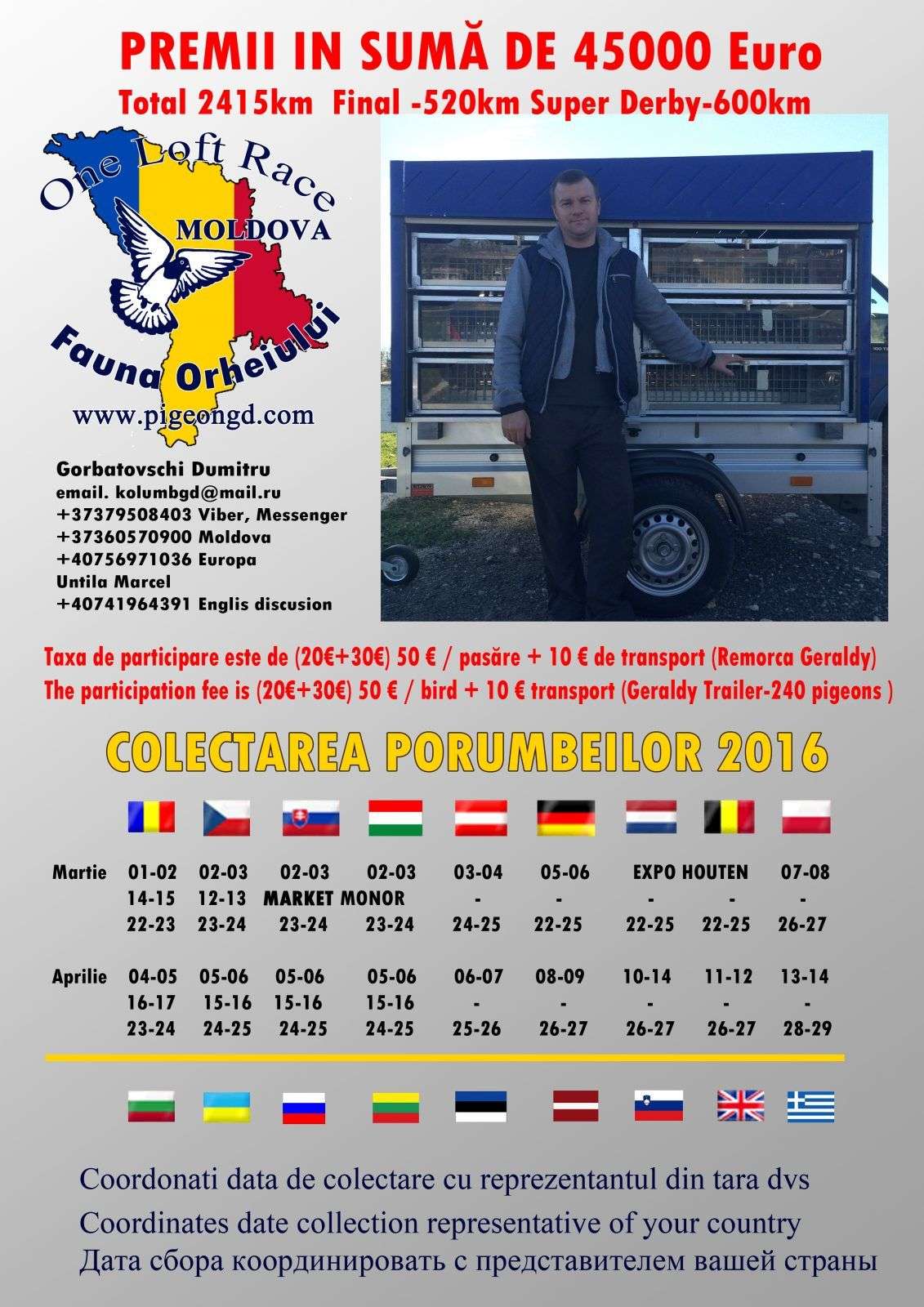 MOLDOVA ONE LOFT RACE PIGEON \"FAUNA ORHEIULUI\" 2016MOLDOVA ONE LOFT RACE PIGEON "FAUNA ORHEIULUI" / 20 January, 2016 20 January, 2016 MORE INFORMATION ]]>