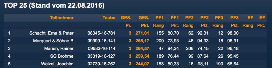 AS-TAUBEN-WERTUNG BLEIBT SPANNEND!
