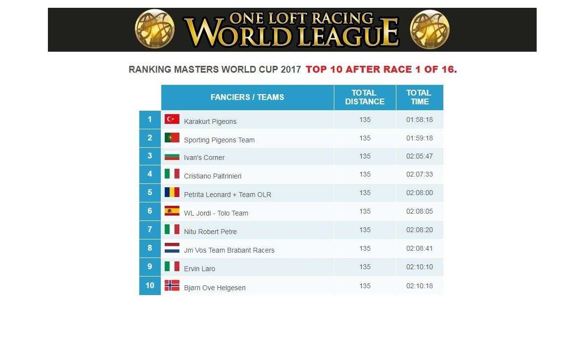 Will Karakurt Pigeons be the first to write his name in the big ring of the MASTERS WORLD CUP and so in the One Loft Races and Racing Pigeons History?