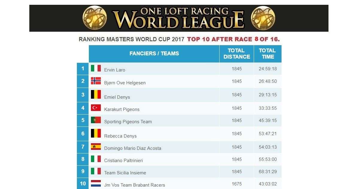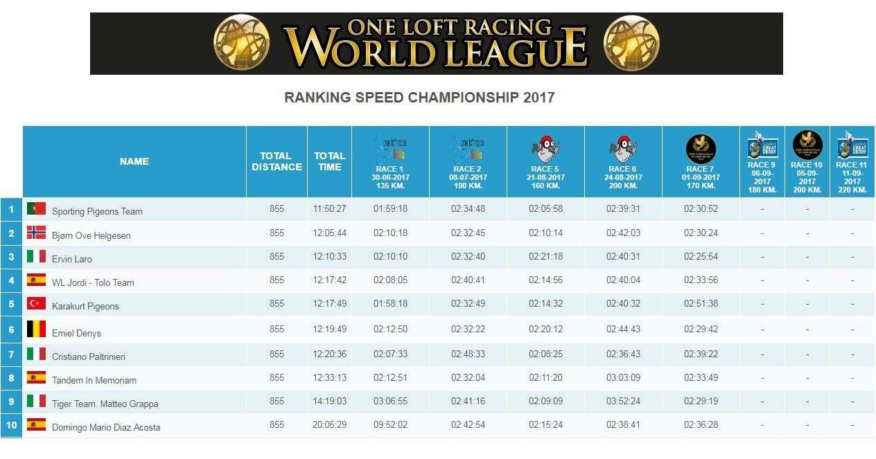 SPORTING PIGEONS TEAM, THE CURRENT SPEED CHAMPIONSHIP 2017 LEADER