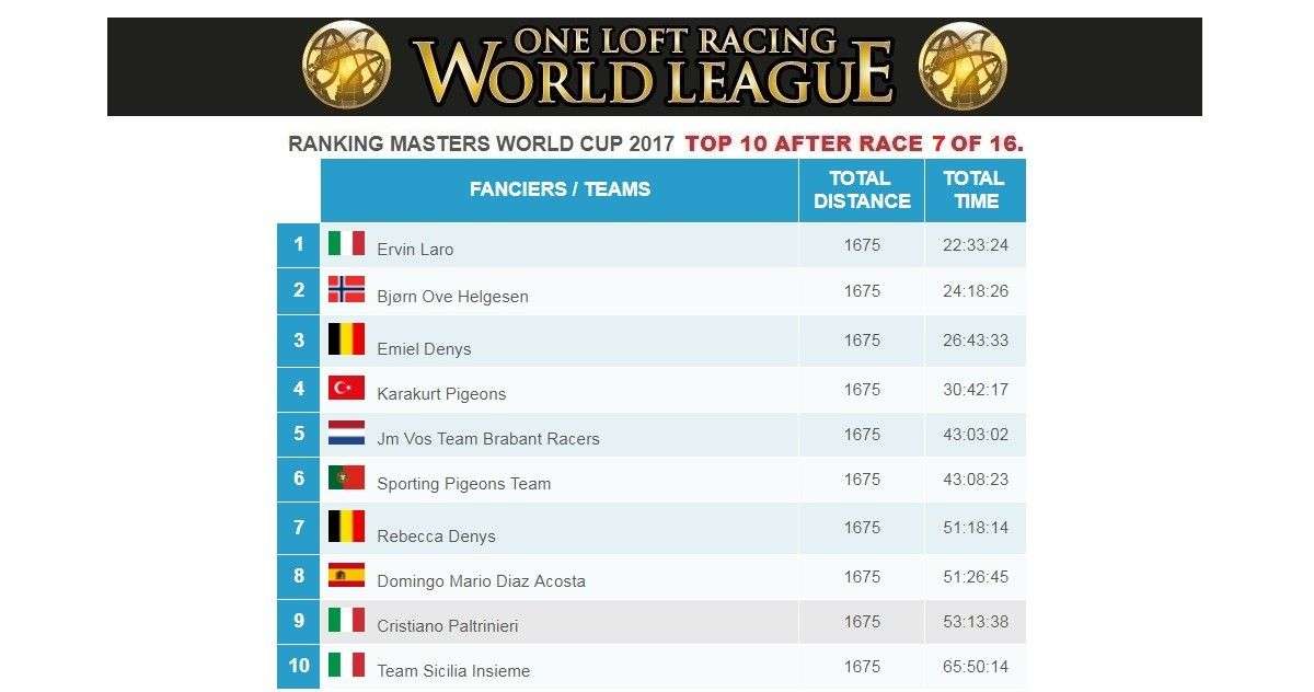 MASTERS WORLD CUP 2017 (Main Competition). FULL TABLE.