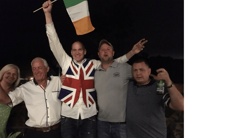 After a fantastic evening of entertainment, food and drink it was once again time to say our goodbyes to many fanciers and friends and when this had been done, it was as usual the British, Irish groups and Sara Blackshaw that were last to leave the hall as they as usual were celebrating after a wonderful race day. Then it was back to the hotel bar to enjoy a few more drinks. As we arrived the place was packed and everybody was in great spirit, drinks were ordered and consumed and then more arrived, then somebody order some shots. I thought this is going to be a long session. Then all of a sudden Jan Hooymans (Netherlands) came up to our table with a bottle of champagne to congratulate Karl Donnelly, Paul Smith & Tad Truszkowski for our performances on the race day and he asked if he could have my Union Jack waistcoat and have some photographs taken and as you can see by this photograph there are Tracey Stacey, Paul Smith, Jan Hooymans, a South African fancier and Karl Donnelly all having a great time. What a fantastic gesture by Jan and one that was really greatly appreciated by all that were present. The drinking and celebrating went on to the early hours.